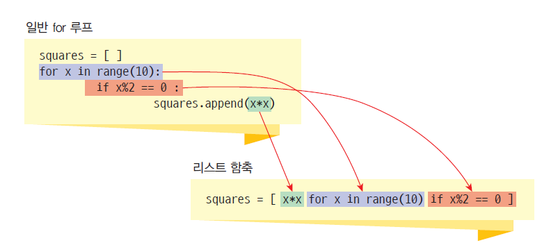 리스트 함축은 요즘 잘 쓰이지 않는다. 하지만 수많은 개발자 중 리스트 함축을 사용하여 코드를 짜는 스타일을 갖고 있는 사람도 있으니 나중에 오픈 소스 코드 등을 읽을 때 알아두면 읽기 수월할 것이다.