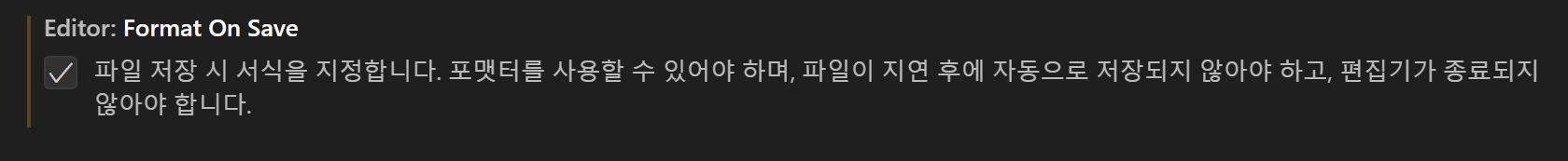 그리고 다음 단계, 설정에서 'format on save'를 입력하고 찾는다.